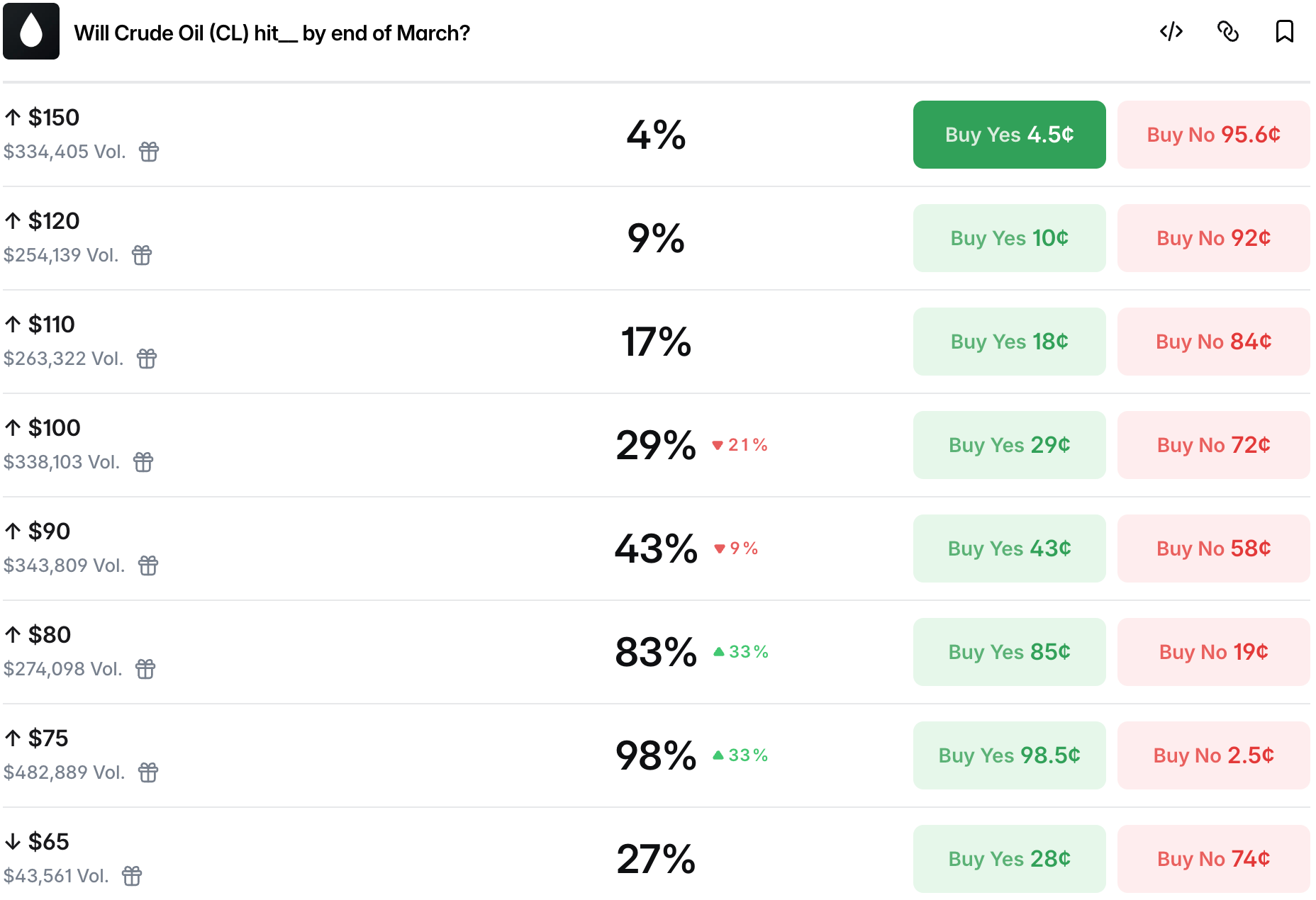 Prediction markets are also reacting to the de facto closure of the Strait of Hormuz. While the market is currently in dispute, it is indisputable that the traffic through the Strait is close to zero.
