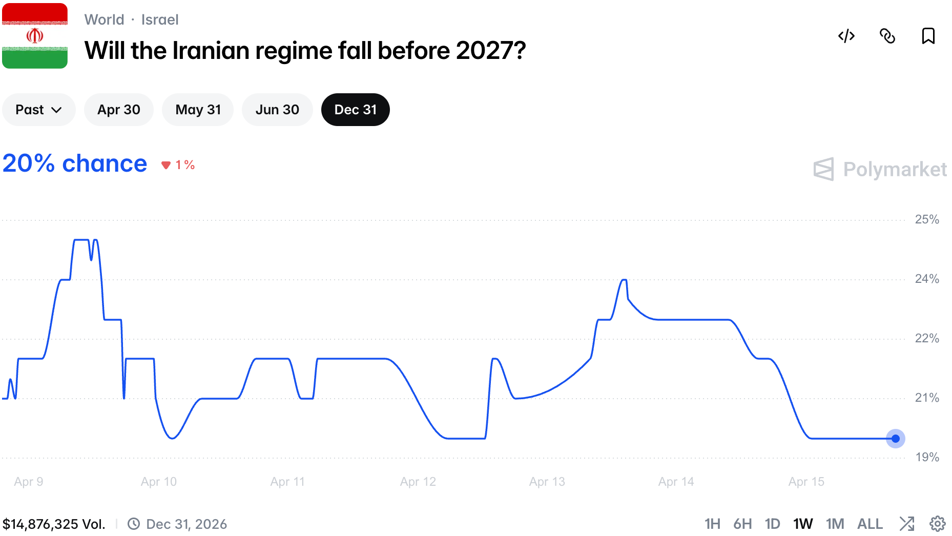 Regime fall chances are also hitting new lows amid possible peace.