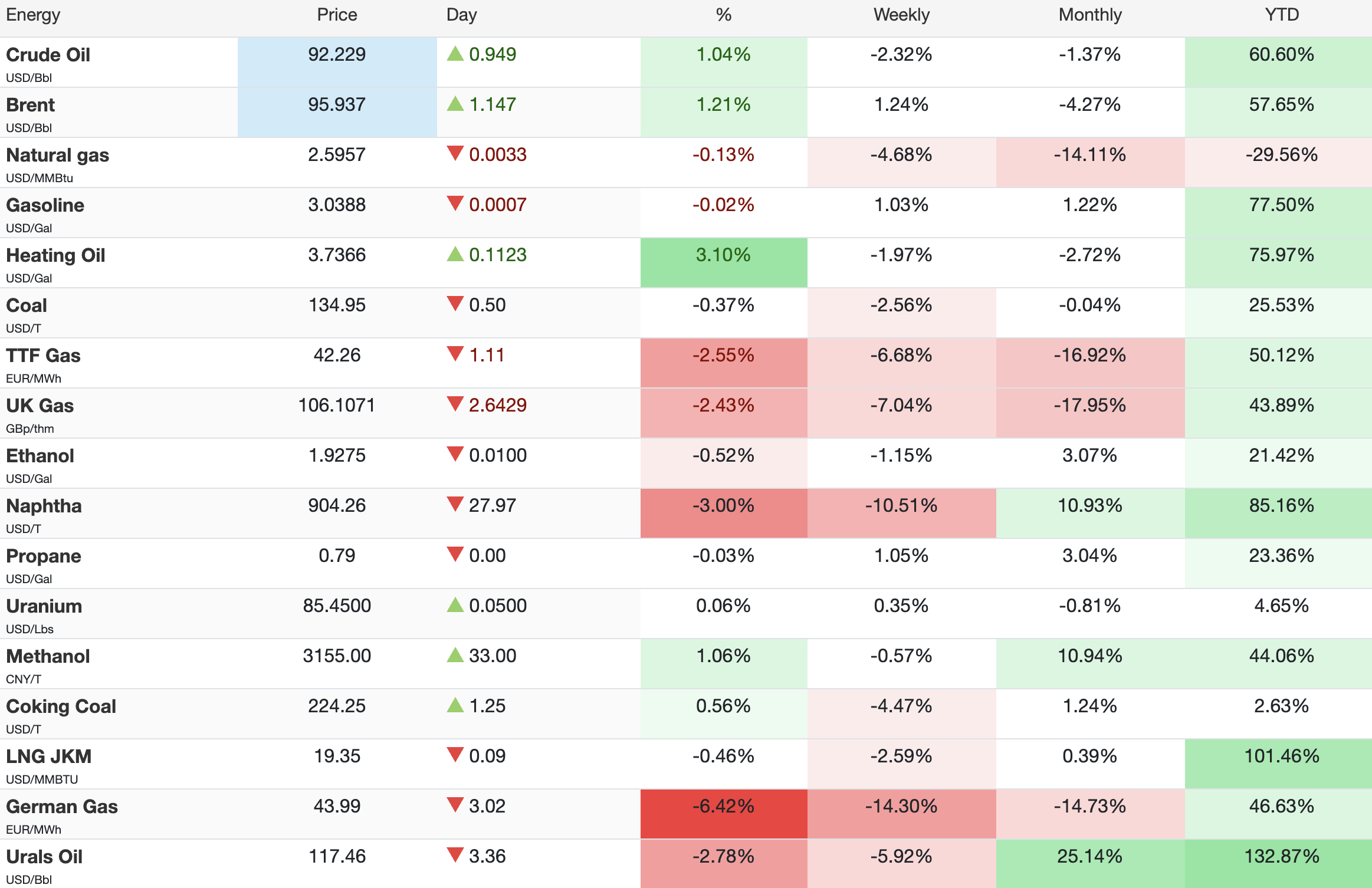 Let's look at how the markets changed since Monday.