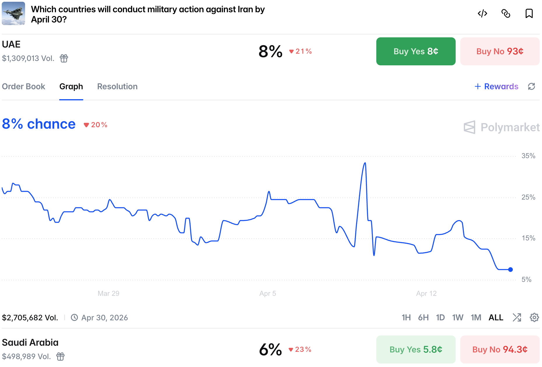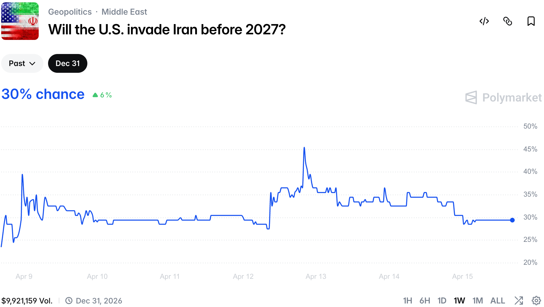 Every Iran-related market screams peace at this point. Of course, there is still chaos and volatility, however directional moves are strong and sustained by mostly sharp traders that accumulate large positions for peace.