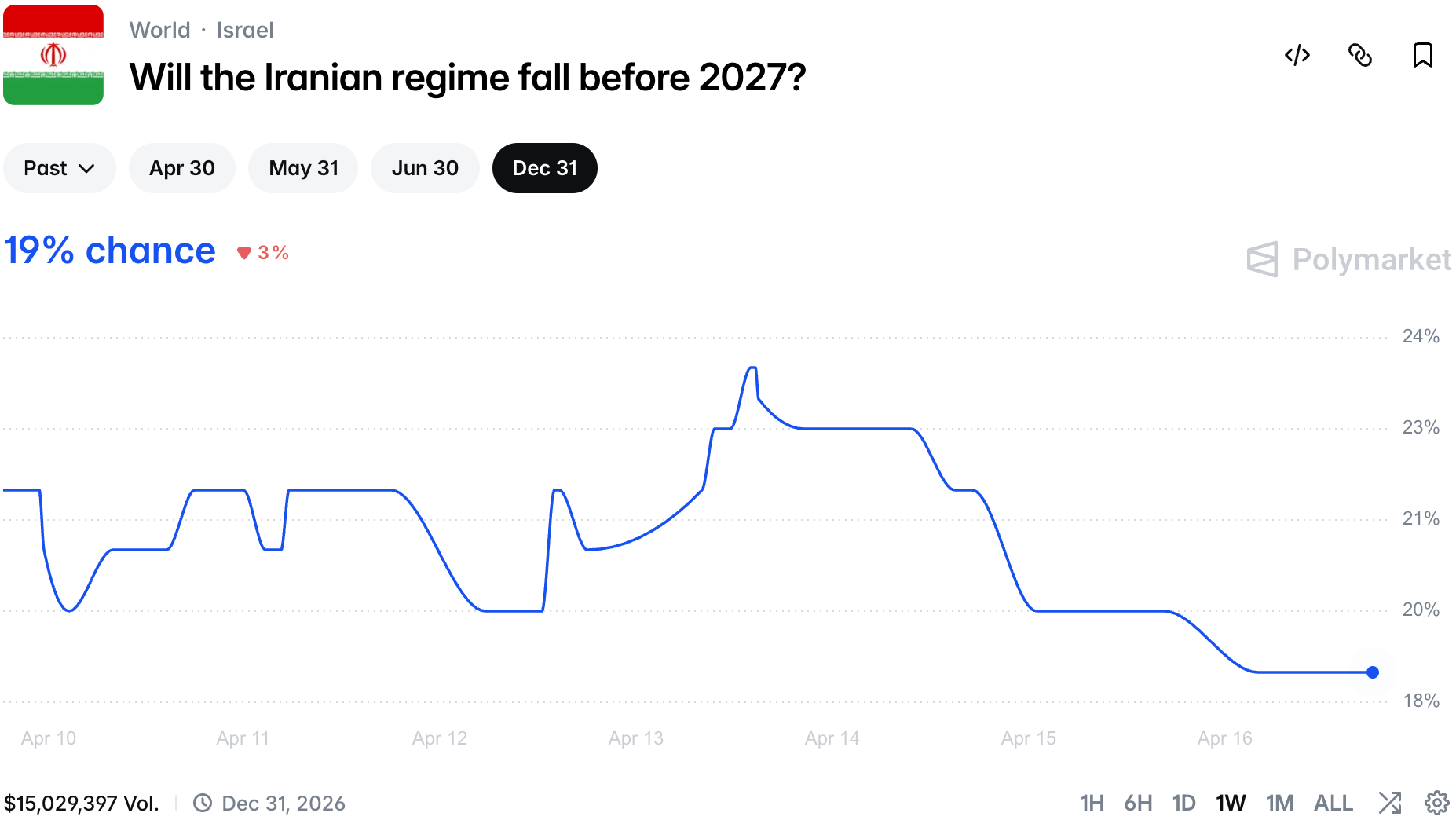 Iran regime fall chances also reached new lows, confirming the above statement.