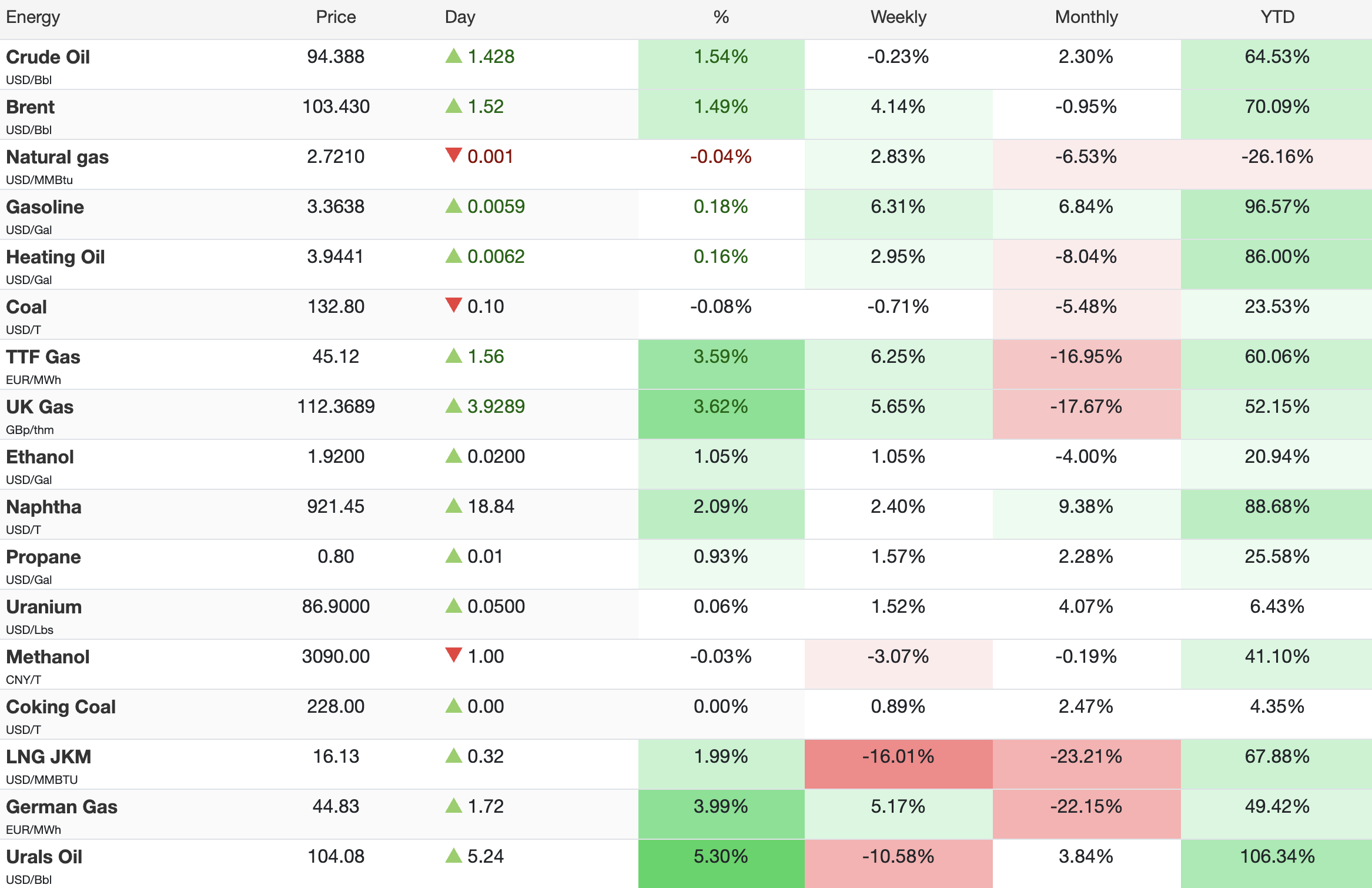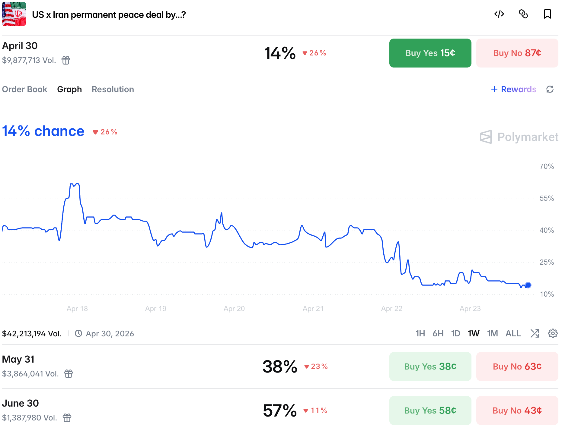Good morning! It's another day in which we have literally no progress on the peace talks. After an extremely hopeful last week, the mood is surely down across the world as more and more people start to face the real consequences of the conflict and the closure of the Strait of Hormuz.