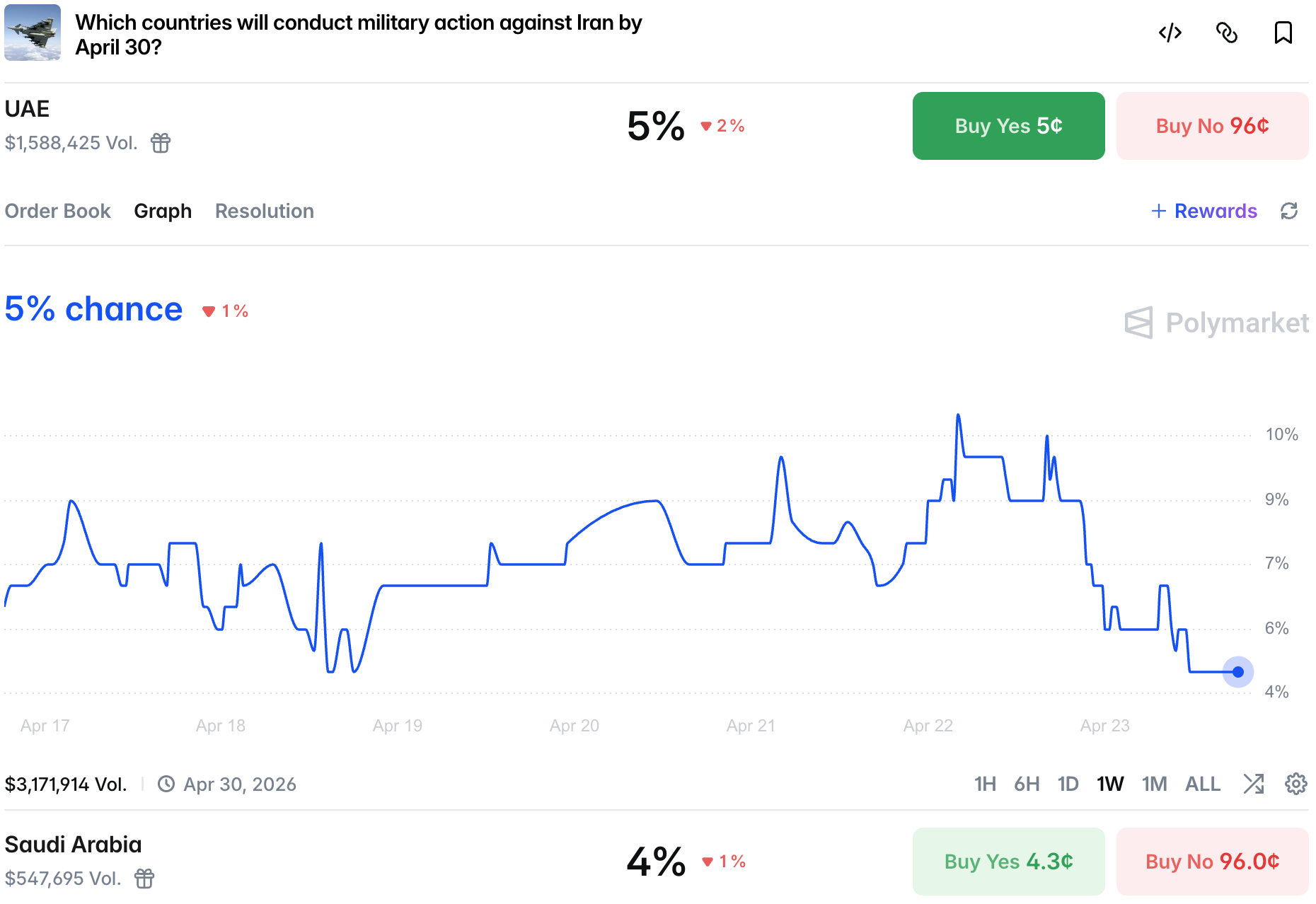 With a week left in April though, expectations are for one last diplomacy push, making any military involvement from the Gulf extremely unlikely in the near term.