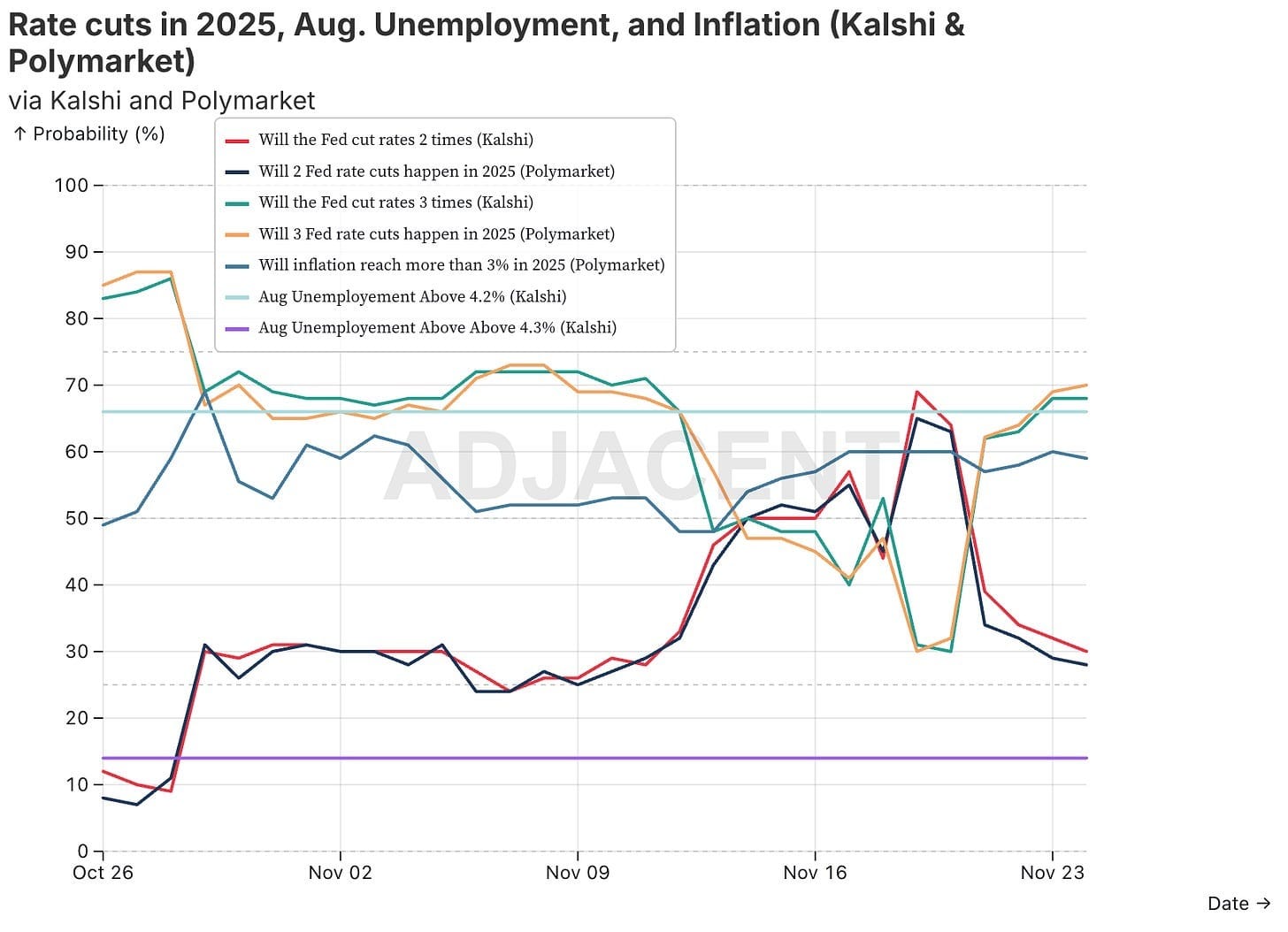 As mentioned in the beginning, last week we had a lot of drama around Ukraine as a 28-point plan was leaked to the press. However it seems that the leak created a lot of confusion in the administration. Witkoff was seen commenting that the Russians leaked it. Rubio at some point denied the plan is American at all (only to walk it back later). Trump himself first pushed Zelensky to sign the memorandum by Thanksgiving, only to say it’s not a final offer a couple days later. There are signs that the leaked plan was prepared predominantly in Russian and hastily translated.