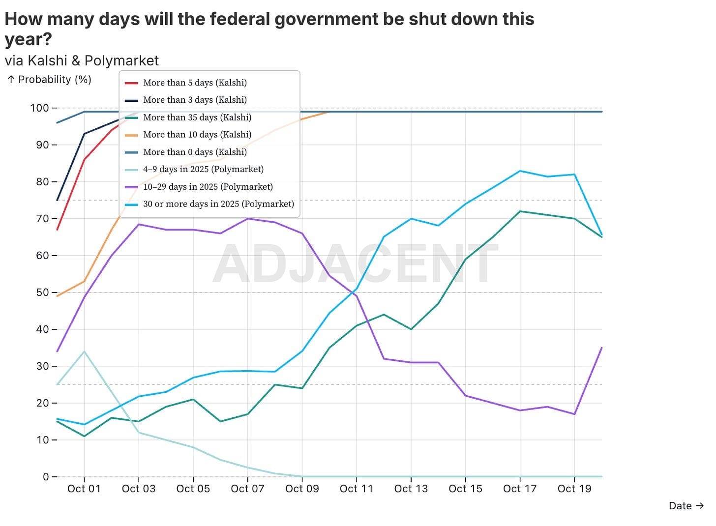 All of this happens while the shutdown continues. Traders are now pricing in a really long one, while I believe that the shutdown itself is part of a wider struggle in Washington.